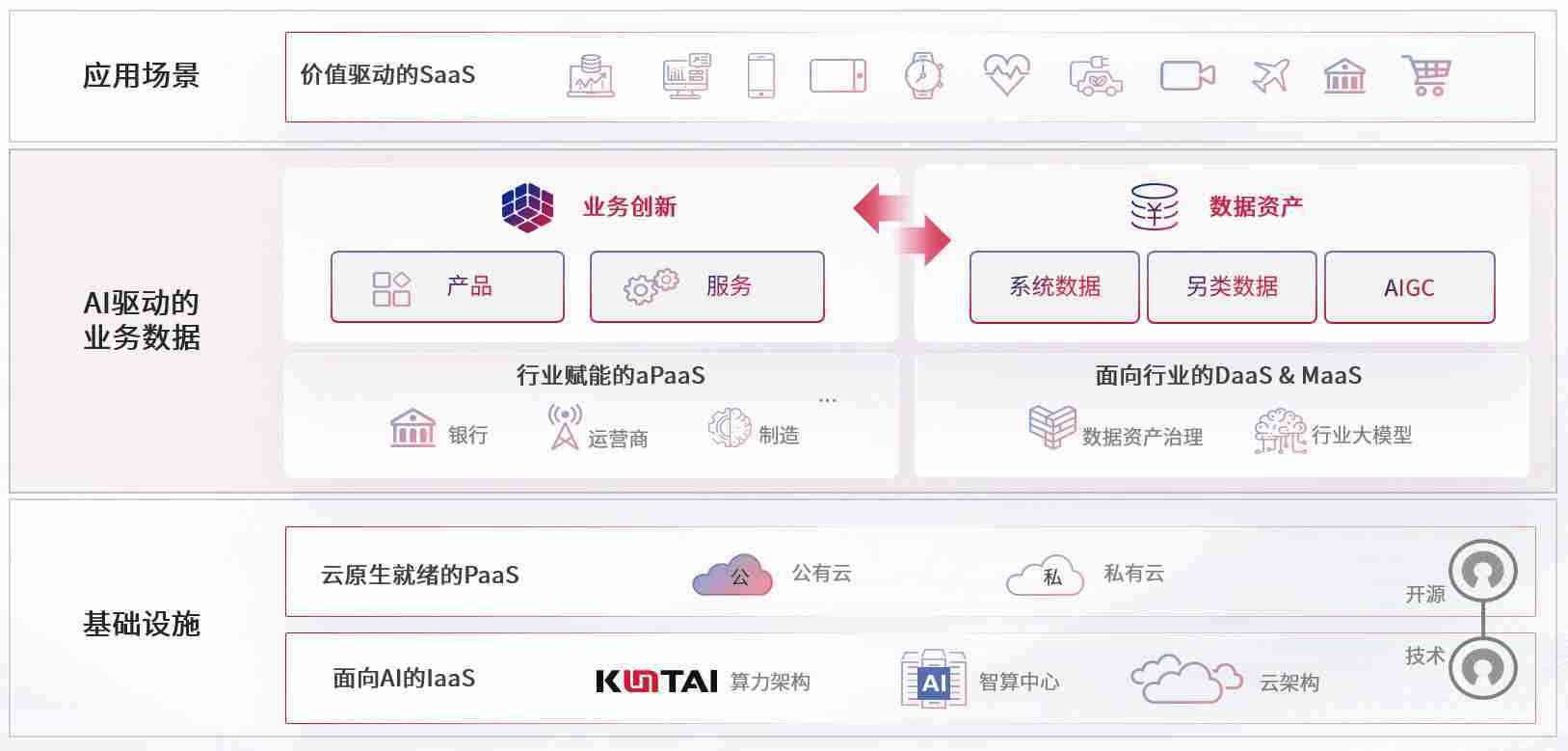 数字时代,,围绕企业数字化转型的关键要素,,PAYPAY数码开创性的提出数云融合战略和技术体系框架,,着力在云原生、、、数字原生、、AI原生和信创产业上架构产品和服务能力,,为处在不同数字化转型阶段的快消零售、、汽车、、、金融、、医疗、、政企、、、、教育、、运营商等行业客户提供泛在的敏捷IT能力和融合的数据驱动能力,,,,构建跨界融合创新的数字业务场景和新业务模式,,,,助力企业级客户建立面向未来的核心能力和竞争优势,,,全面推动社会的数字化、、、、智能化转型升级。。。。