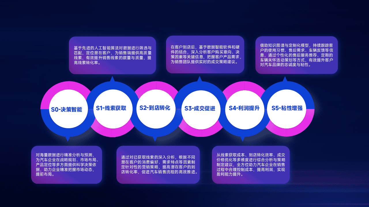 通过拓宽潜在客户来源、、、优化线索分配并提高到店转化率,,,,以增强销售效率。。同时,,,利用线索数据不断优化分析模型,,,有效提升转化率,,,,扩大营销影响力。。。